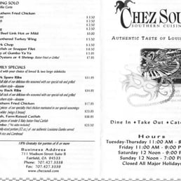 Chez Soul Southern Cuisine Menu